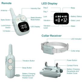 Tento výcvikový obojek pomůže cvičit vašeho psa, bez námahy. Vyberte si ze tří nastavitelných tréninkových režimu - zvuk, vibrace a elektrostatický impuls, obojek disponuje vestavěným světlem, který Vám pomůže najít vašeho společníka i ve tmě na nočních procházkách. Plynulé nastavení intenzity korekce zajistí otočné kolečko na ovladači. Bezpečnost na první místě, obojek je vybaven bezpečnostním zámkem klávesnice, která zabraňuje nechtěnému použití. Přikoupením dalšího příjímače můžete cvičit až 2 psy na dosah 1000m. Výcvikový obojek je voděodolný a dodáván s pevným nylonovým obojkem a reflexním oranžovým proužkem, který se snadno nerozthne. Vysílač a přijímač lze je nabíjet současně pomocí nabíjecího USB kabelu, který je součástí balení, baterie v provozu vydrží 12-15 dní.